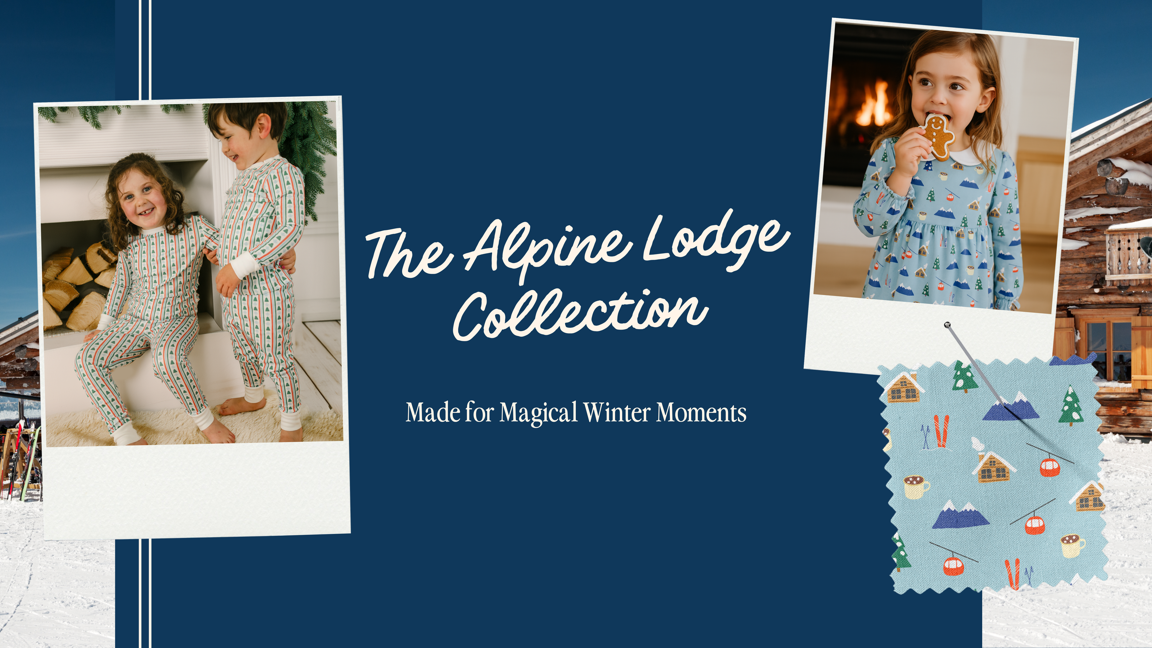Inspired by the magic of crisp mountain mornings, snowy cabin weekends, and cocoa-fueled adventures, our Alpine Lodge Collection was created to celebrate the joy of childhood in wintertime. Each piece is made with the softest pima cotton and features playful, hand-drawn prints designed to spark imagination and invite adventure.