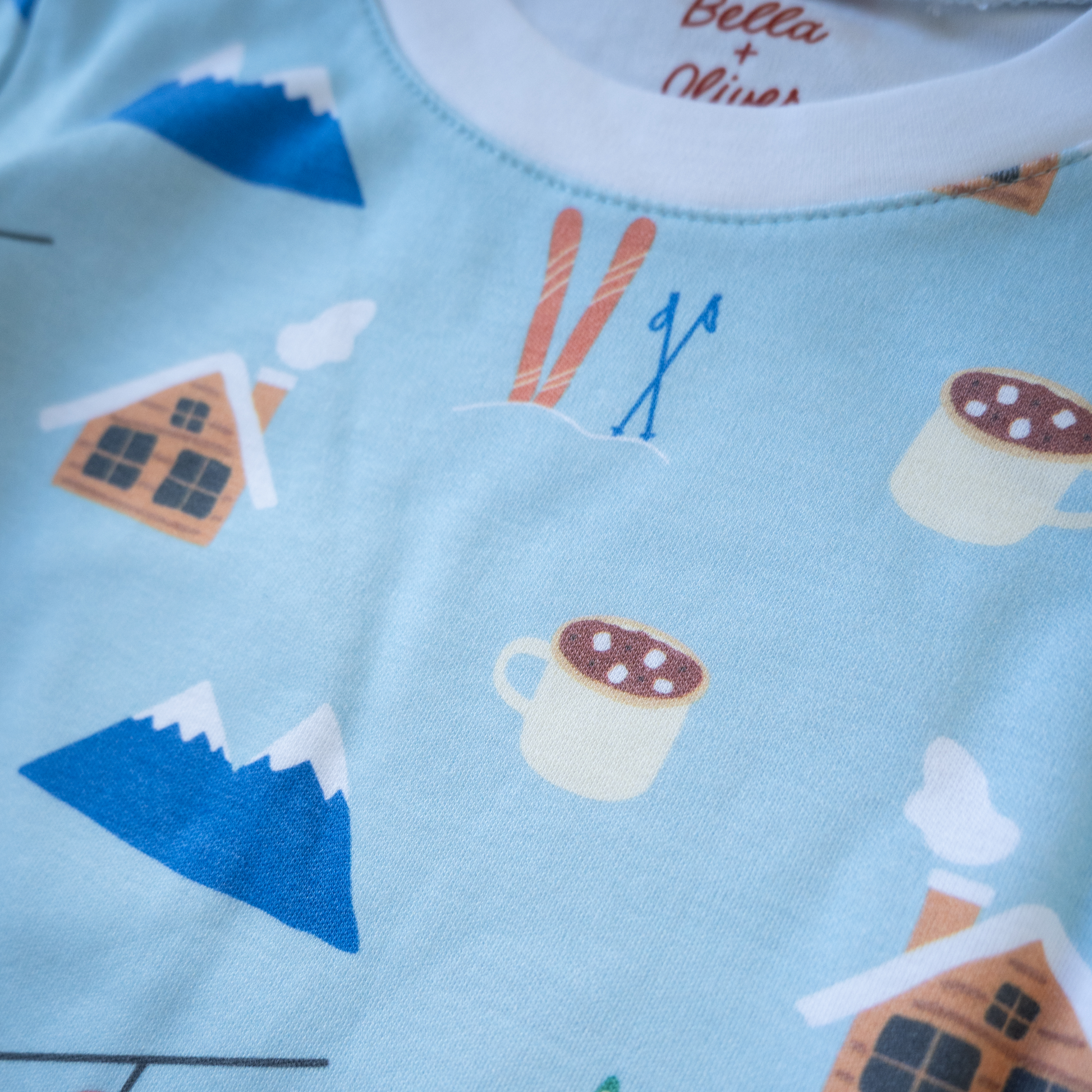 Our Sawyer Set is made for cozy nights and playful mornings. This two-piece set includes a snug-fit long sleeve top and pants in our exclusive Slope Side print—perfect for matching sibling mornings and festive family traditions. Made with our signature Peruvian pima cotton, it’s a set they’ll never want to take off.